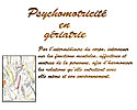 A la faculté de médecine Pitié-Salpêtrière Ces cours visent à donner des éléments d'une culture gériatrique, de manière à favoriser le positionnement du futur psychomotricien face à la personne âgée malade ainsi qu'au sein d'une équipe de soin pluridisciplinaire (kiné, ergo, médecin, psycho,…) Ils doivent permettre de spécifier l'intervention du psychomotricien tant dans sa compréhension du patient et de son environnement (lecture psychomotrice) que dans ses thérapeutiques. |